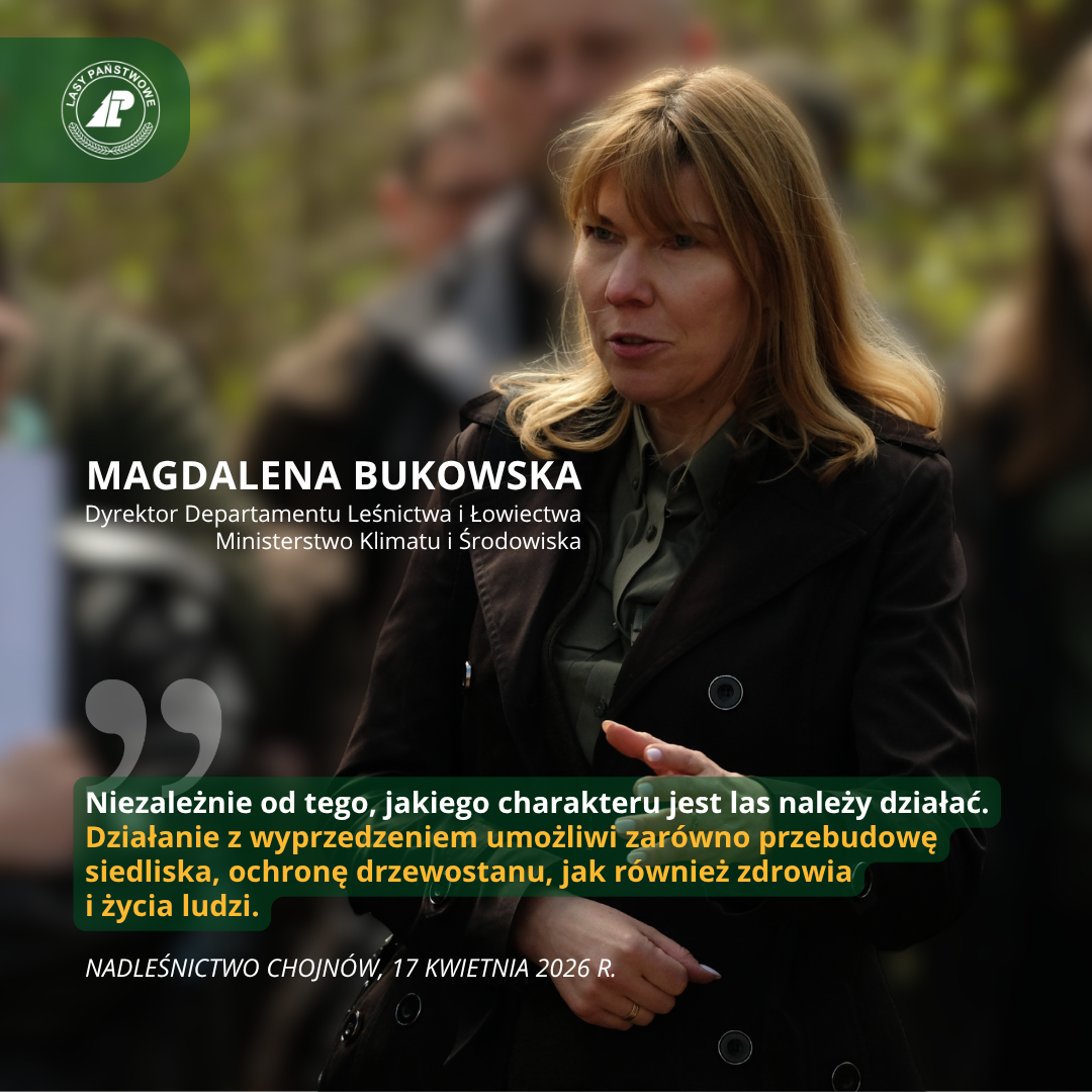Dyrektorka Magdalena Bukowska zaznaczyła, że w lasach, szczególnie takich wokół obszarów zurbanizowanych, jak tereny Nadleśnictwa Chojnów, konieczne jest podejmowanie zdecydowanych działań aktywnej ochrony już po zauważeniu pierwszych symptomów zamierania drzew. Jest to kluczowe dla zachowania trwałości lasów. – Niezależnie od tego, jakiego charakteru jest las, należy działać. Działanie z wyprzedzeniem umożliwi zarówno przebudowę siedliska, ochronę drzewostanu, jak i zdrowia i życia ludzi – mówiła.