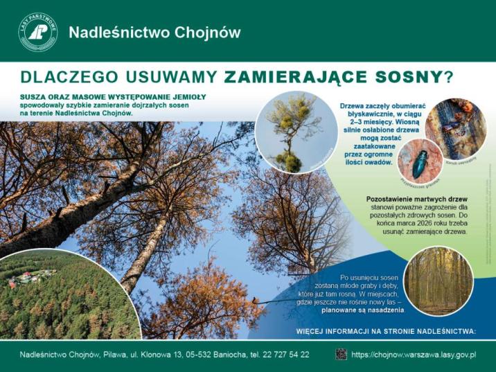 Dyrektor Regionalnej Dyrekcji Lasów Państwowych w Warszawie Tomasz Józwiak wskazał, że sytuacja obserwowana w Nadleśnictwie Chojnów nie jest odosobnionym przypadkiem. Podobne problemy z zamieraniem sosen występują również w innych nadleśnictwach, m.in. w Garwolinie, Jabłonnie czy Celestynowie, a także w wielu regionach kraju. Zjawisko to ma charakter alarmujący.