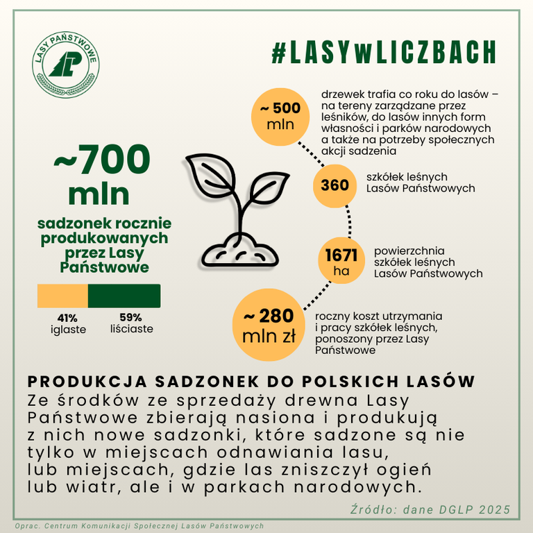 Sadzenie nie odbywa się przypadkowo. Każda powierzchnia jest wcześniej przygotowywana, a prace prowadzone są zgodnie z planami urządzenia lasu. W Polsce co roku sadzi się setki milionów drzew, co jest elementem trwałej i zrównoważonej gospodarki leśnej. W tym roku na terenie RDLP w Warszawie planowane jest prawie 1,5 tys. ha odnowień. Na potrzeby odnowień sadzeniem leśnicy naszej dyrekcji wykorzystają niemal 7,5 mln szt. sadzonek, różnych gatunków rodzimych drzew. Nowe pokolenie zastępuje wcześniej wycięte drzewa, ale też wzbogaca strukturę drzewostanów.